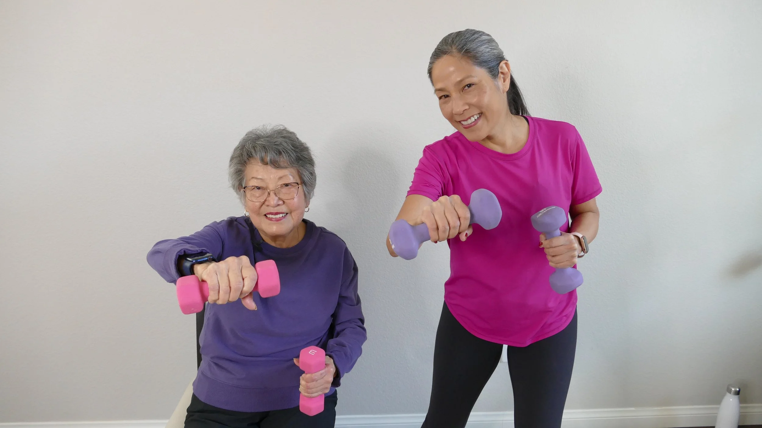 We have many ways for you to continue your journey with us. You can mix and match our more than 200 workout videos spanning cardio/walking, balance, strength training, and gentle stretching, ranging from 5 to 60 minutes. They’re categorized in playlists on our YouTube Channel and on our website.